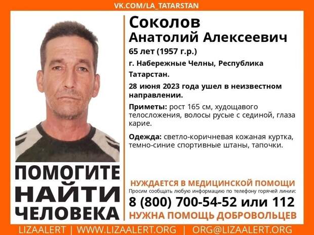 Когда уходил из дома был одет в светло-коричневую куртку, темно-синие спортивные штаны и тапочки.Челнинцев, которые видели пропавшего, просят позвонить на горячую линию 8 (800) 700-54-52 (звонок бесплатный).