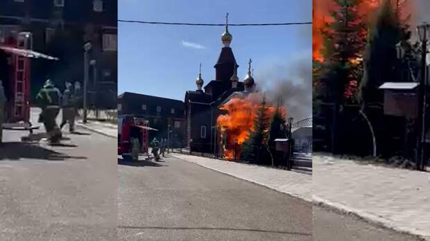 Сообщение о происшествии поступило в экстренные службы в 11:42. На территории храма преподобного Романа Сладкопевца загорелась отдельно стоящая бревенчатая колокольня.