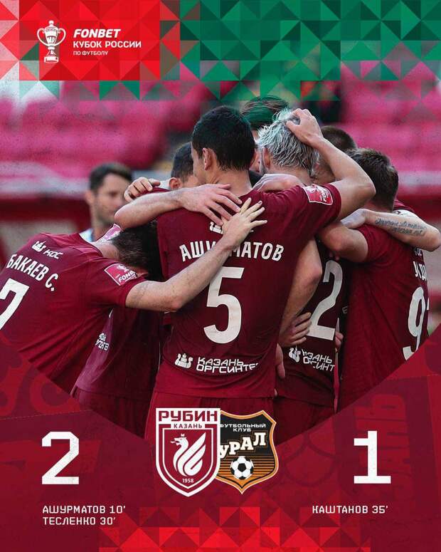 Голы забили Рустам Ашурматов и Егор Тесленко за казанскую команду, а Андрей Егорычев отличился за гостей. Вторая победа «Рубина» в сезоне помогла им разделить второе место в группе B с «Ростовом» и «Уралом».