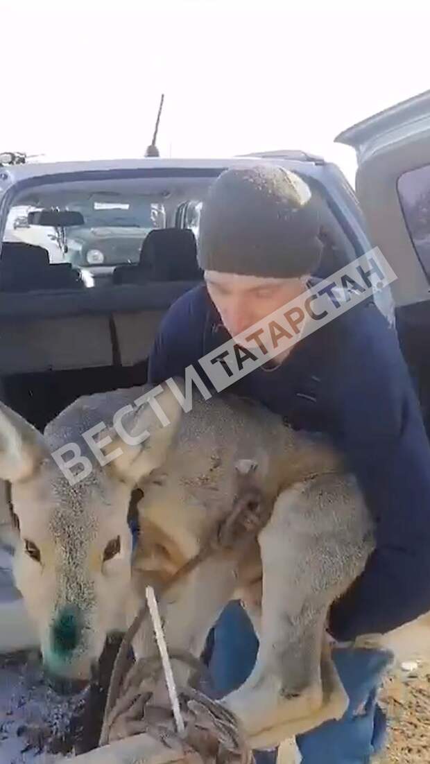 Оно не могло выбраться на свободу. Возможно, забежало на придомовую территорию, прячась от собак.Вызволять копытное приехали егеря охотхозяйства района. Ее осмотрел ветеринарный врач. На момент осмотра животное было напугано, серьезных травм не получило. Ее благополучно выпустили в естественную среду обитания. Животное встало на ноги и побежало в лес.