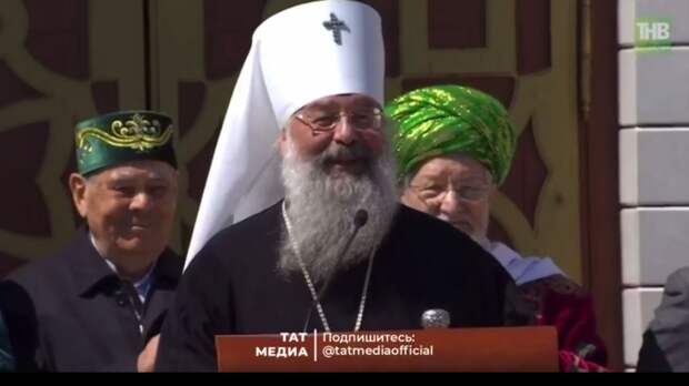 Митрополит казанский и татарстанский Кирилл принял участие в церемонии открытия «Изге Болгар жыены» и поприветствовал гостей на татарском языке.
