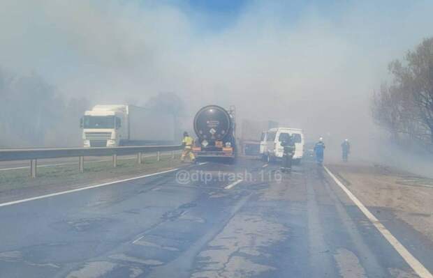 Очевидцы сообщают, что причиной массового ДТП между селами Маврино и Русский Акташ стало сильное задымление от горящего поля.