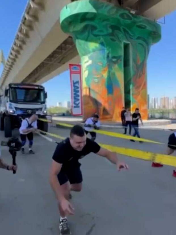 Один из самых ярких моментов – 10 атлетов смогли сдвинуть с места КАМАЗы в сцепке общей массой около 100 тонн.