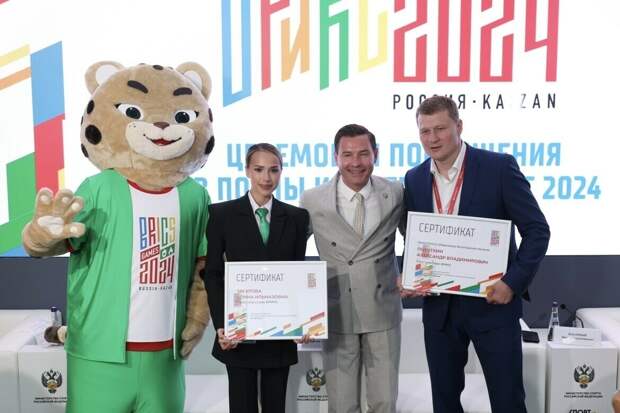 На Петербургском международном экономическом форуме Олимпийскую чемпионку Алину Загитову назначили послом Игр БРИКС. Сертификат ей вручил министр спорта Татарстана Владимир Леонов.