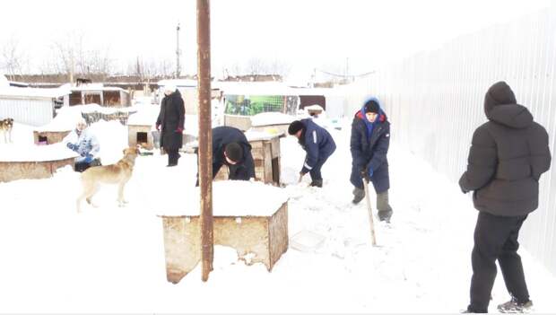 Медколледж взял шефство над приютом, и студенты, а также их наставник Геннадий Ватрушин, помогали чистить территорию от снега.