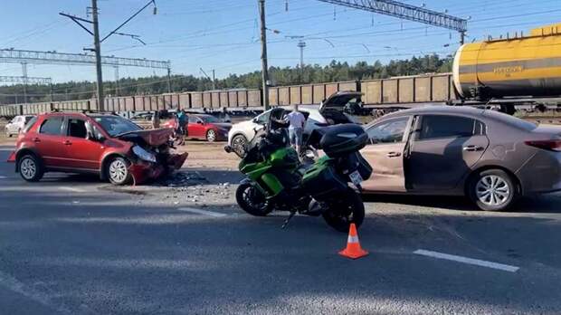 Затем с Kia столкнулся мотоциклист на Kawasaki.