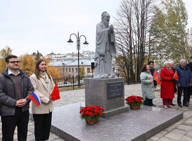 В Казани открыли памятник Конфуцию. Монумент расположен на территории Казанского федерального университета, рядом с библиотекой имени Лобачевского.