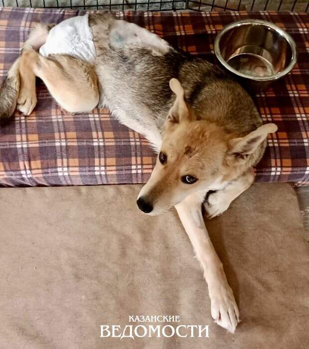 В начале февраля собаку нашли парализованной из-за пулевого ранения. Ее доставили в клинику, где выяснилось, что пуля повредила ей спинной мозг и из-за этого у дворняги отказали задние лапы.