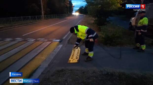 Близ переходов появились яркие и заметные надписи «ВНИМАНИЕ! ИГЪТИБАР!». Места для нанесения выбрали неслучайно. Это те точки, где были аварии с участием пешеходов и велосипедистов: перекрестки в центре города и в спальных районах.
