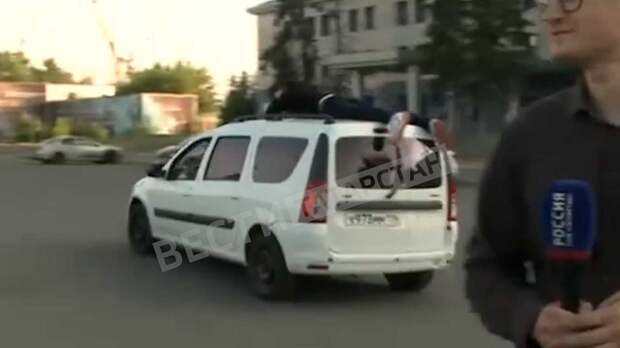Водитель «Лады» решил прокатить мужчину на крыше авто. Судя по кадрам, нарушитель стеснялся.