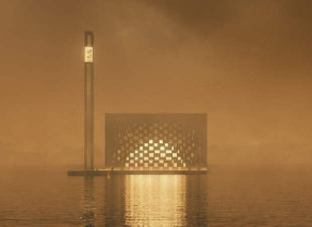 Мечеть расположится на воде, соединяясь с берегом Волги. Прообразом стала Кааба — здание представляет собой черный куб, внутри которого расположится молельный зал.