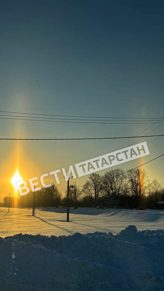 Радужный столб заметили наши подписчики в Лаишевском районе.