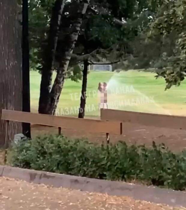 Казанцев шокировало такое поведение. Молодые люди бегали под каплями автополива по газону нагишом. В это время их фотографировала девушка.