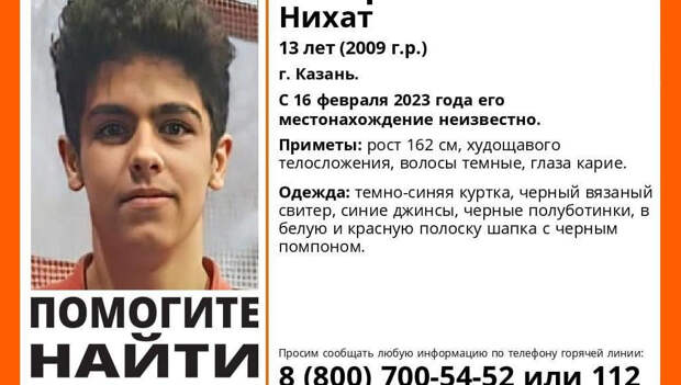 Известно, что 16 февраля мальчик ушел в школу и пропал. Заявление от близких уже зарегистрировали в отделе полиции «Ямашевский».