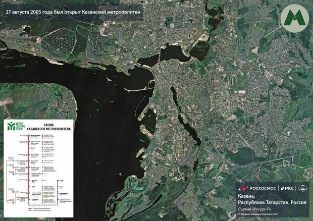 18 лет назад в Казани открылись первые станции метро. В честь этого события госкорпорация «Роскосмос» опубликовала снимок города, сделанный со спутника «Ресурс-П».