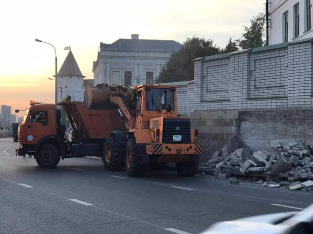 Инцидент произошел на Профсоюзной ближе к территории Ионанно-Предтеченского монастыря. Около 20 метров стены обрушились на тротуар Местные оперативно сообщили об обрушении в администрацию.
