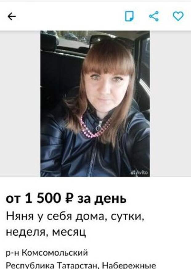 В объявлении Алтынбаева указала, что готова присматривать за чужими детьми в своем доме, который находится в районе Комсомольском. Он также написала, что не курит и не злоупотребляет алкоголем.