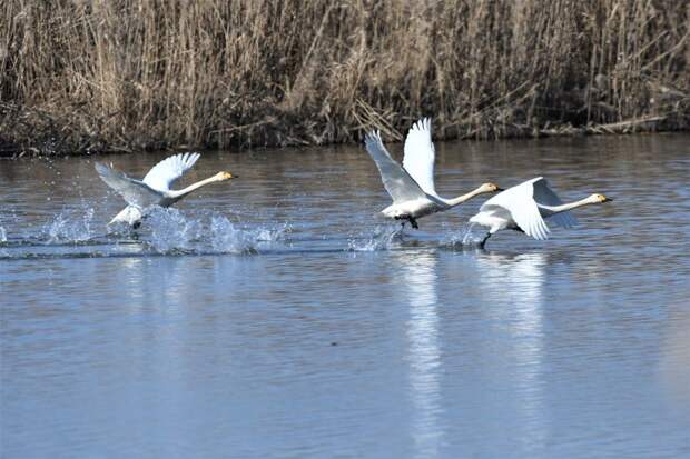 Четыре малых или тундровых лебедя (Cygnus bewickii) были замечены на небольшом озере у автотрассы Казань – Ульяновск в Верхнеуслонском районе. Этот вид птиц является редким для фауны России и в Татарстане до этого не фиксировался.