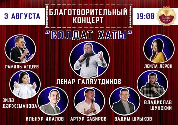 Звездой сцены станет мобилизованный Ленар Галяутдинов, который прибыл в двухнедельный отпуск. Кроме того, участие в стендап-концерте примут Рамиль Агдеев, Зиля Дарземанова и другие артисты.