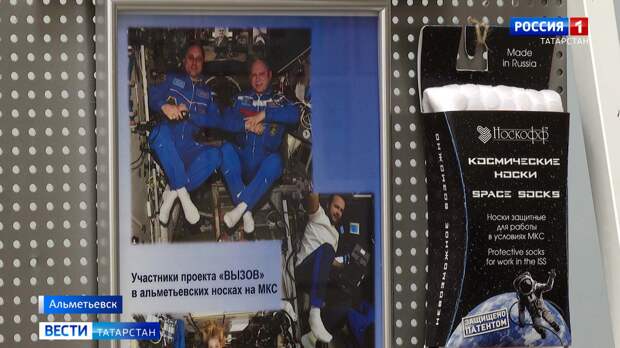В День космонавтики к поздравлениям в адрес международного экипажа на МСК могут присоединиться и альметьевские вязальщицы. Чулочно-носочная фабрика отправила для наших космонавтов очередную партию специальных космических носков. Об этом Дмитрий Второв. В учебном классе фабрики памятная фотография, на которой космонавты Антон Шкаплеров и Олег Артемьев на борту МКС в специальных белых носках.