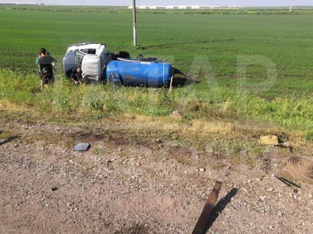 От удара цистерна вылетела за пределы дороги и перевернулась.На место происшествия прибыли экстренные службы. Спасатели приступили к устранению последствий ДТП. По информации очевидцев, два человека пострадали, их госпитализировали.