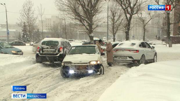 Непрекращающийся снегопад спровоцировали коллапс и заносы на дорогах по всей Казани.