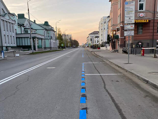 Синяя разметка появится на 149 участках. Она обозначает, что места для парковки являются платными. В Комитете внешнего благоустройства сообщили, что места для инвалидов будут обозначать белым цветом.