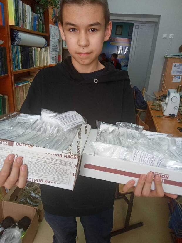 За неделю школьники подготовили более 200 наборов сухого душа. Это две губки из специальной ткани с пеной, полотенце и инструкция, упакованные в герметичный пакет.
