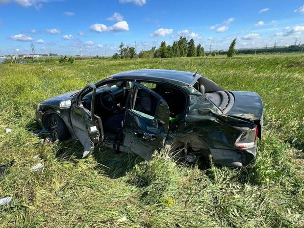 В результате лобового столкновения автомобиля Opel с грузовым самосвалом КамАЗ легковушку отбросило в кювет на противоположной стороне дороги. Три человека пострадали в ДТП: 63-летний водитель Opel, его супруга и их 7-летний внук.