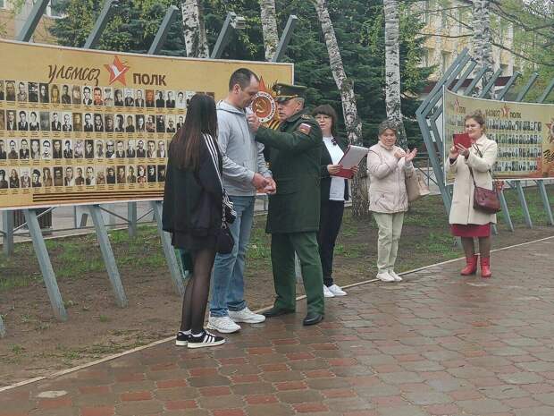 Демобилизованного ветерана боевых действий Дмитрия Токарева наградили медалью «За воинскую доблесть» II степени за отвагу и самоотверженность при исполнении воинского долга. Награду вручил военный комиссар района Сергей Залуженко, передает «Татар-инорм».